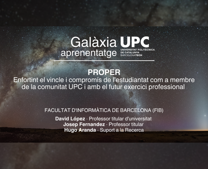 PROPER - Enfortint el vincle i compromís de l'estudiantat com a membre de la comunitat UPC i amb el futur exercici professional (FIB)